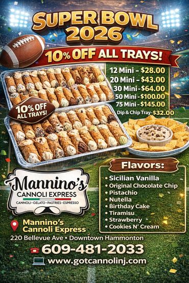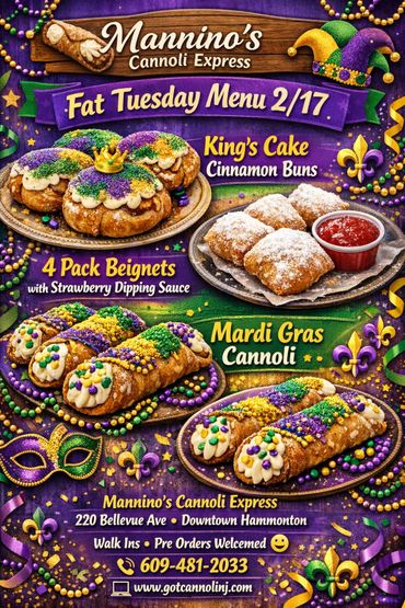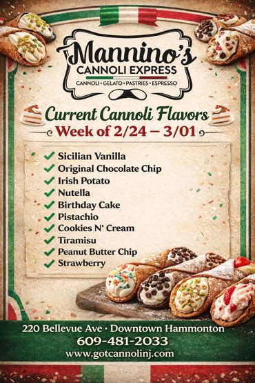 Mannino's is a family business. We love to meet new people and treat them like they are our own family. Be sure to follow stop by our storefront or visit our cannoli trucks, it may be in your town next!